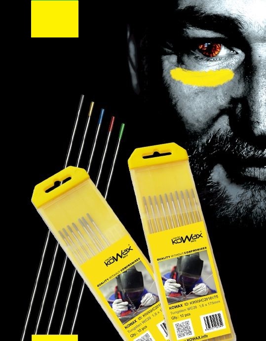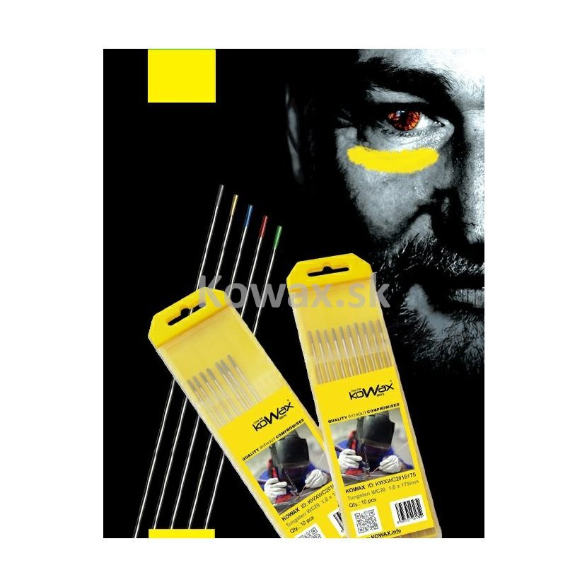 Volfrámové elektródy KOWAX ZLATÉ s obsahom Lanthanu 1,5%. Průměr 1,6 mm, délka 175 mm. Značková kvalita KOWAX.